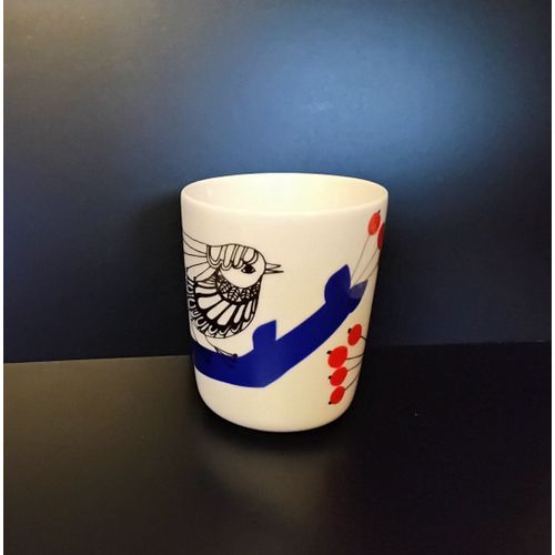 Oiva - Pakkanen muki 2,5 dl, tarralla. Käyttämätön. Aiheena jokin lintu ja punaisia marjoja, vähän vanhempaa tuotantoa. Ei tuotannossa enää. Käyttämätön.