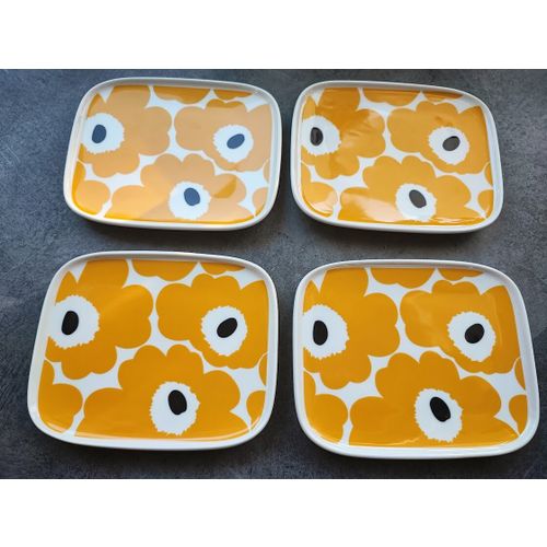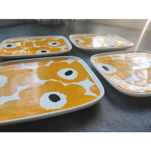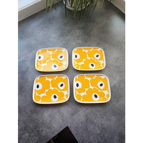 Oiva - Unikko lautanen, 15x12 cm, valkoinen-keltainen-t.sininen