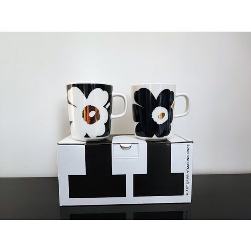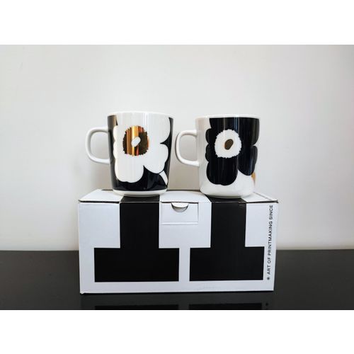 Käyttämättömät Juhla Unikko Gold-mukit 2kpl. Kultauksen vuoksi suositellaan käsinpesua.