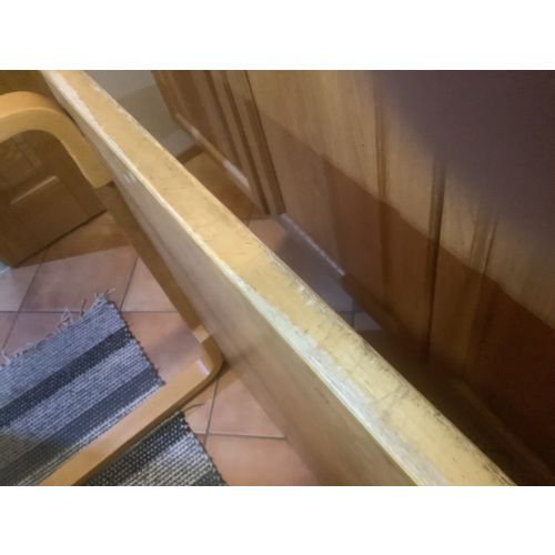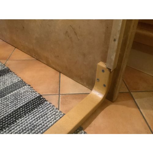 Aallon 70 vuotta vanha pöytä, jonka linokansi on alkuperäinen ja siitä löytyy vuosikymmenten kolhut ja käyttöjäljet. Pöydän jalat on myöhemmin restauroitu ja ovat hyvässä kunnossa.