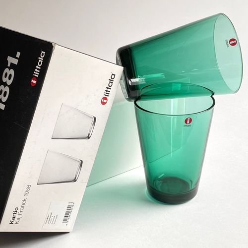 Iittala Kartio -juomalasi 40 cl, smaragdinvihreä, 2 kpl:n setti. Käyttämätön, virheetön, kaikki tarrat mukana, alkuperäispakkauksessa. Seurantalähetys. Toimituskulutarjous pyydettäessä.