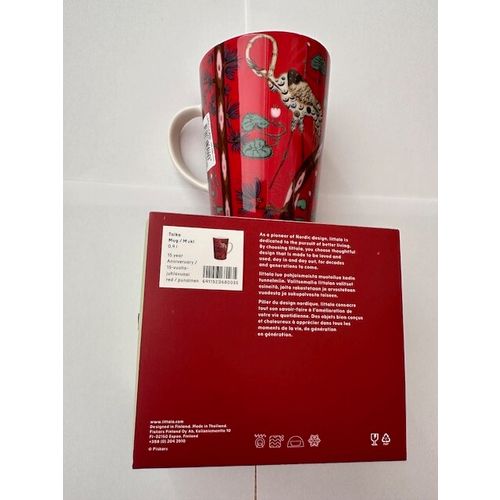 Iittalan taika 15-vuotisjuhla muki punainen. Omassa pakkauksessaan. Ollut vain koristeena