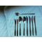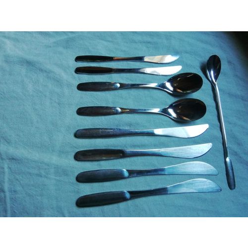 Erittäin hyvässä kunnossa olevat Savonia-aterimet: 4 veistä (20 cm) 2 veistä (16,5 cm) 2 ruokalusikkaa (18,5 cm) 1 cocktail-lusikka (20,5 cm)