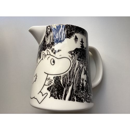 Moomin Arabia Seikkailu kaadin (2008-2013). Kuvitus on Tove Janssonin romaanista Taikurin hattu. Kannu on uusi, ei käytetty lainkaan. Sopii keräilijöille. Tarra pohjassa.