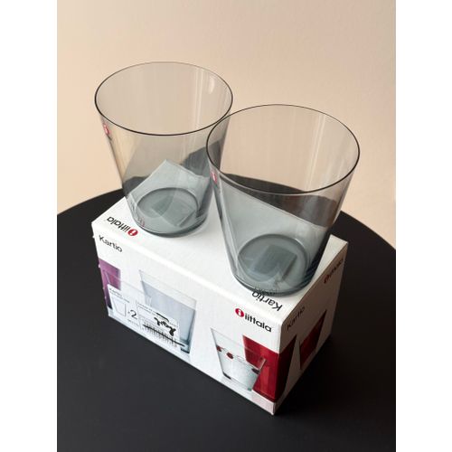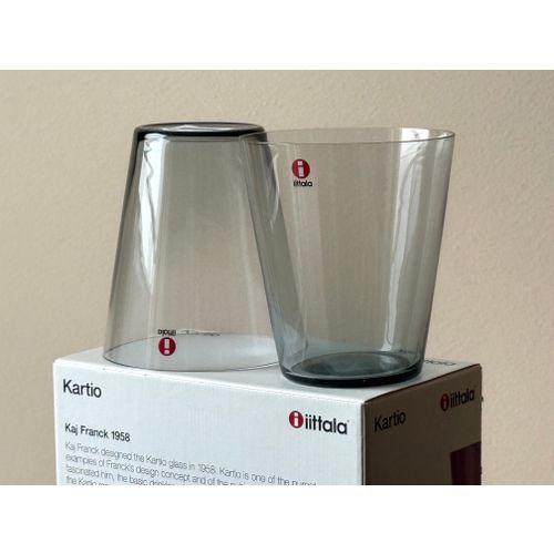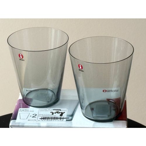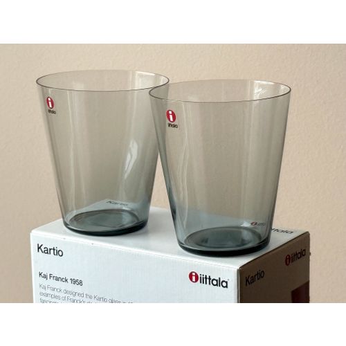 Iittala Kartio -juomalasi 34 cl, harmaa, 2 kpl:n setti. Käyttämätön, täydellisessä kunnossa alkuperäispakkauksessa ja -tarralla. Luotettava toimitus saatavilla pyynnöstä. Kysy toimituskuluja maahasi.