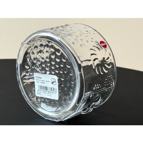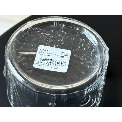 Iittala Flora jälkiruokakulho 80 mm, kirkas. Käyttämätön, täydellisessä kunnossa, alkuperäispakkauksessa ja etiketillä. Luotettava toimitus saatavilla pyynnöstä. Kysy toimituskuluja maahasi.
