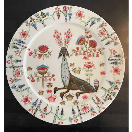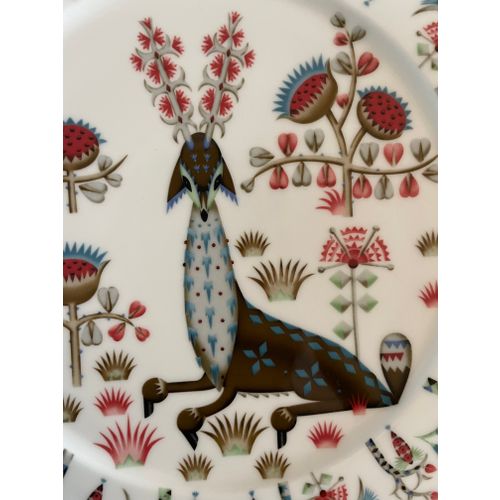 Iittala Taika Siimes lautanen 27 cm. Uusi. Taika tarkoittaa taikuutta suomeksi. Siimes-sarjan suunnitteli Klaus Haapaniemi muinaisista tarinoista ja omasta villistä mielikuvituksestaan inspiroituneena. Myyttiset olennot ja eriväriset köynnökset määrittelevät muotoilua samalla yksityiskohtaisella tyylillä kuin klassinen Taika-sarja. Sarja on nyt poistunut valikoimasta ja on harvinainen.