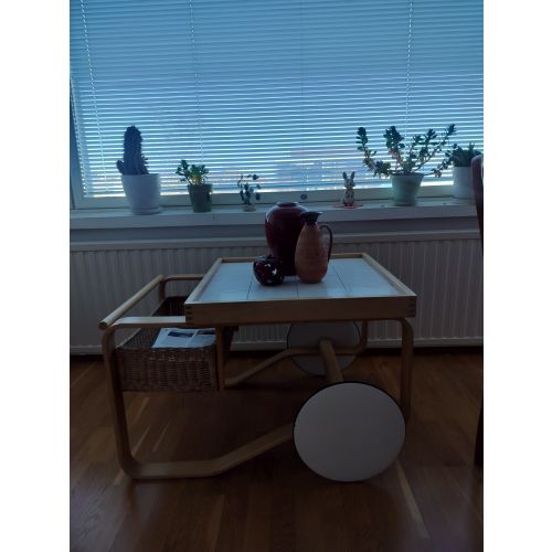 Upea, todella hyväkuntoinen Artek 900 tarjoiluvaunu valkoisilla kaakeleilla. 80-luvulta.
