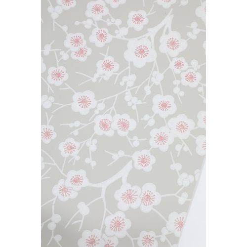 Kirsikkapuu tapetti, harmaa - valkoinen