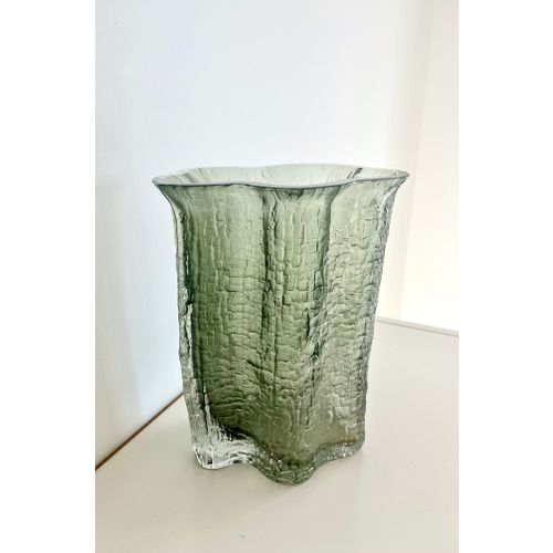Timo Sarpanevan suunnittelema Finlandia-maljakko. Vihreänharmaata lasia, korkeus 22 cm. Vintegea vuodelta 1964. Suunnittelijan signeeraus pohjassa.