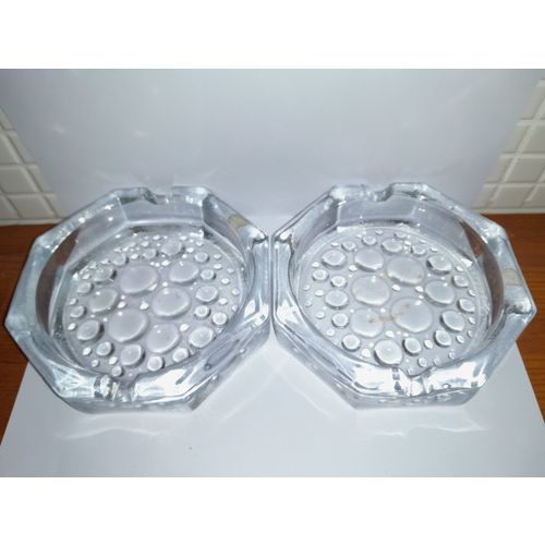 Riihimäen Lasin Stella Polaris sarjan kirkkaat tuhka-astiat. Itse käyttänyt kynttilänalustoina. Läheltä katsottuna vähäisiä lähes huomaamattomia käytön jälkiä sisäpohjassa.