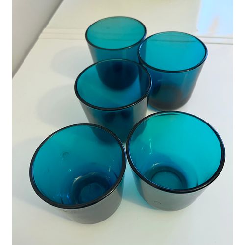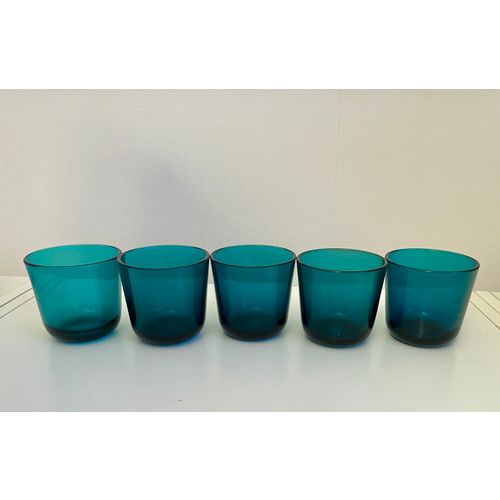 5 kpl turkooseja Kaj Franckin suunnittelemia laseja, Nuutajärven malli 5021. Vintage-tuote, valmistuksessa 1950- ja 1960-luvuilla. Myydään settinä.