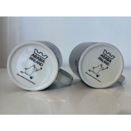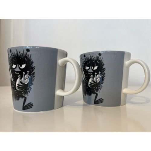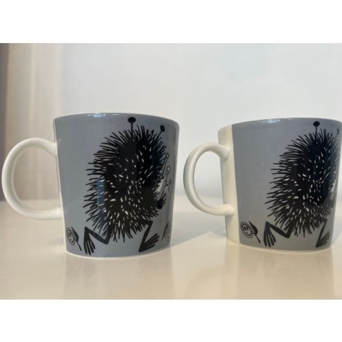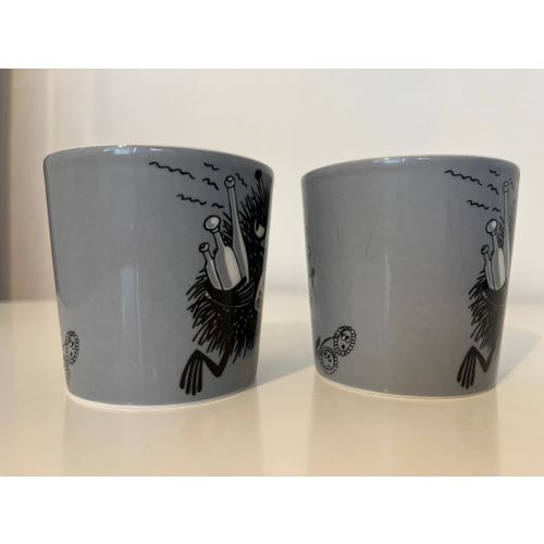 Keräilymuki! Myyn kaksi harmaata Haisuli Muumi mukia vuodelta 2001. Arabian kruunu- ja vuosileima pohjassa.