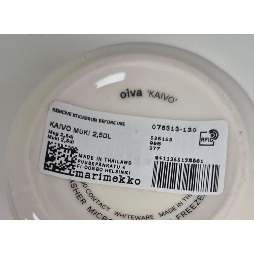 Myydään kaksi Marimekon Kaivo-mukia. Tilavuus on 2,5 dl. Käyttämättömät, tarrat kiinni.